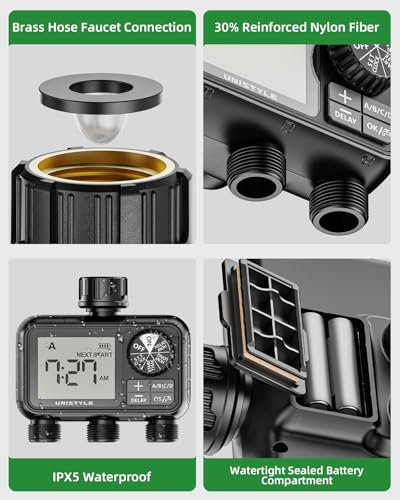 ?Enhanced Durability Construction?Incorporating a 30% reinforced nylon inlet assembly with pressure-optimized structural engineering, this irrigation controller guarantees zero-leak performance. The weatherproof housing combines industrial-grade materials with UV stabilization technology, ensuring all-weather resilience against temperature extremes (-20?-60?), intense sunlight, and harsh environmental conditions for year-round reliability.
