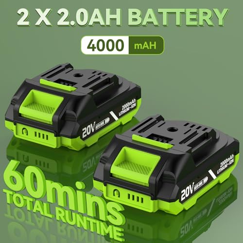 ?True All?Day Runtime?Stop struggling with short battery life. Our kit includes 2* 2000mAh batteries for 60 minutes of combined runtime. Use one while the other fast?charges—no more long waits! This weed wacker cordless system keeps you working continuously. As a top?rated battery powered weed eater, it powers through any task, whether as a lawn edger or standard trimmer.