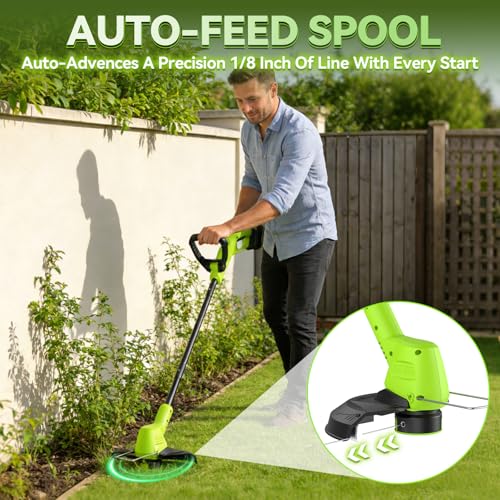 ?Jamming?Free Auto?Feed & 6 Spools Included?We’ve perfected the automatic line feed on this string trimmer cordless. Our system feeds smoothly every restart—no manual adjusting needed. This weedeater eliminates the headache of constant fiddling. Plus, we include 6 durable replacement spools so you never run out mid?job. For reliable trimmer string and a dependable lawn trimmer, this model delivers.