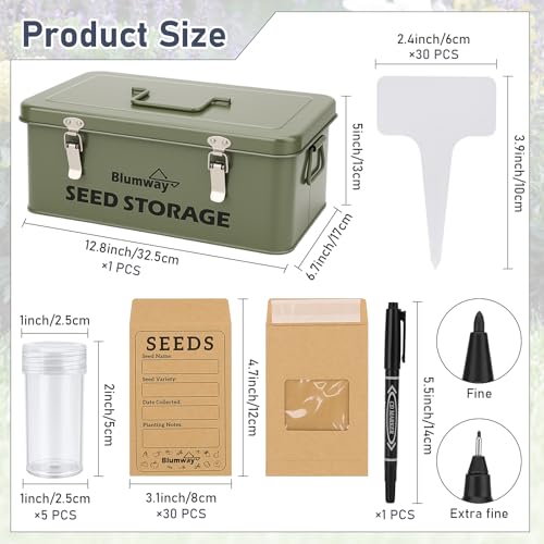 ?Multi-Functional Seed Box?This seed storage organizer measures 12.8 x 6.7 x 5 inch, offering large space to store seeds of various sizes. Our seed organizer storage box have 4 compartments, 5 seed bottles, 30 plant labels, 30 seed envelopes and 1 maker pen. The seed bottles assist in collecting different varieties and sizes of seeds. Our garden seed organizer have 4 spacious compartments for storing, organizing and categorizing all vegetable, flower and herb packets.