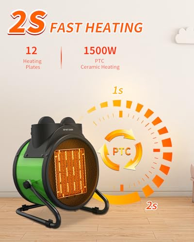 Save Energy: Buyplus portable space heater can heat up quickly in 3 seconds and quietly in 35-45DB. Use it as supplemental heat to the main heating system - no need to crank up the thermostat for the whole house when you are out. This garage fan heater provides up to 1507W heat on the high setting, and its fan only option generates refreshing air circulation without increasing heat. No worry about winter electric bill any more!