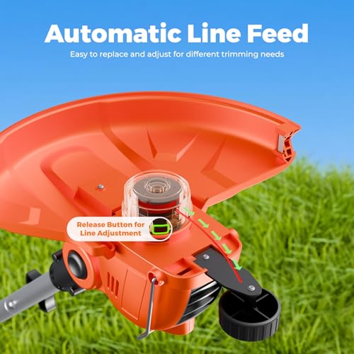 Advanced Auto-Feed Line, No Bumping Required: Keep working without interruptions thanks to the upgraded automatic line feed system. Unlike traditional weed wacker or weed eater models, this battery operated weed eater allows the line to advance smoothly for consistent cutting performance