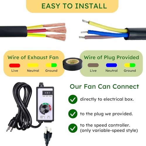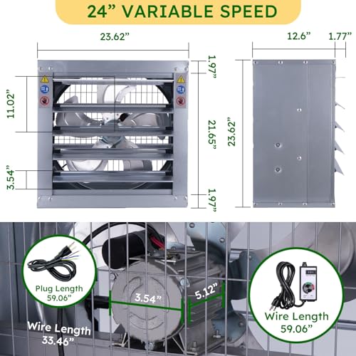 ????SPEED CONTROLLER: This 24" wall mounted heavy duty exhaust fan include a variable speed controller.Adjust the speed of vent fan by twisting knob.Easy to connect,just insert the plug we provide into the socket of controller.