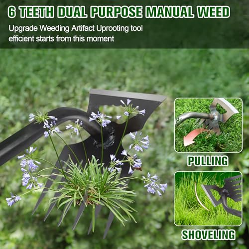 [Weeding Artifact Uprooting Weeding Tool] Using our weeding tool for Yard and Garden is straightforward. Its special 6 Tines design allows it to penetrate various soil types effortlessly while ensuring that the grass roots are as close to the bottom of the groove as possible, facilitating easy weed removal in corners and narrow spaces. Additionally, the artifact uprooting weeding tool loosens the soil surface for enhanced gardening efficiency.