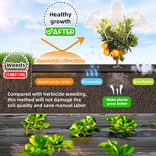 ?Highly Permeable and Breathable?Weed control mat that resist UV rays and withstand sun exposure feature a cross-weave and permeable, breathable design. It is durable while allowing more air and water to penetrate the soil, effectively reducing erosion and driving out weeds.