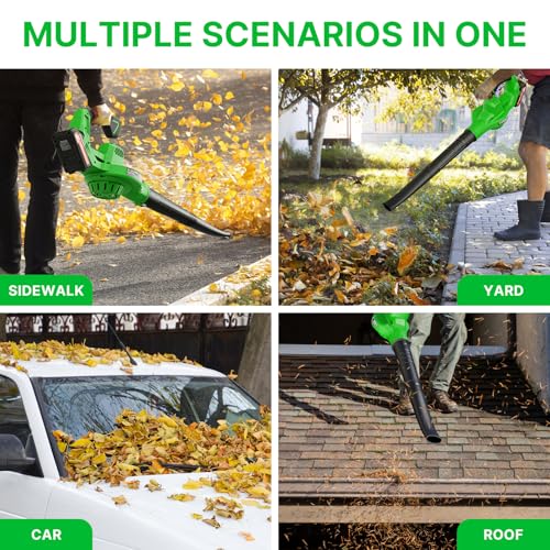 ?Powerful Motor?The leaf blower cordless, with a maximum wind speed of 160 MPH (Miles Per Hour) and a maximum rotational speed of 19,500 RPM (Revolutions Per Minute), is a versatile tool designed for efficiently clearing leaves and debris from your yard or street