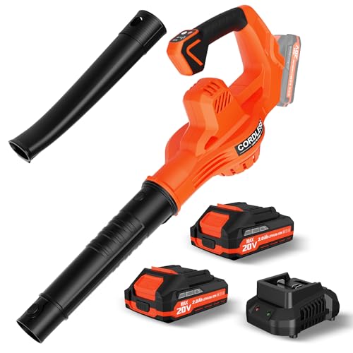 ?2*20V 2.0Ah Batteries?Tired of the constraints of a power cord or the noise of a bulky leaf blower? This cordless leaf blower comes with 2*20V 2.0Ah batteries. And features 1-hour fast charging. This is a battery operated leaf blower cordless with battery and charger