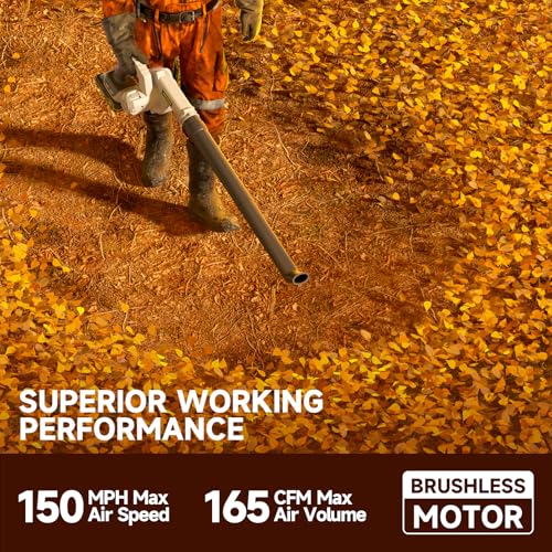 BRUSHLESS TURBO ENGINE- Adopt advanced brushless motor, max engine speed reaches 16000 RPM, offering 150MPH 165CFM high blowing speed. Pulituo pro blower provides 25% More Power, 50% Longer Runtime and 10X Machine Lifetime. The electric leaf blower cordless can efficiently sweep away stubborn dust and debris, making cleanup a breeze.
