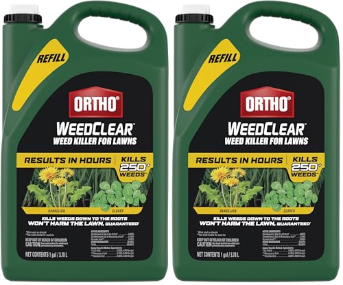 Use Ortho WeedClear Weed Killer for Lawns refill to kill weeds down to the root, without harming your lawn (when used as directed); you'll see visible results in hours