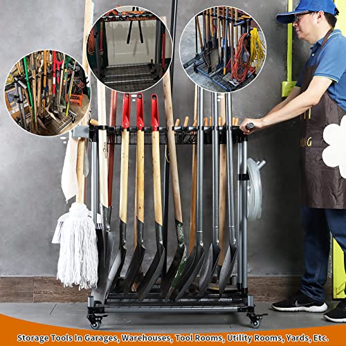 1. [Extra heavy duty] metal heavy duty tool cart, can hold 22 heavy duty long handled garden tools, 5 light duty cleaning tools, lots of small tools, maximum weight 300 lbs