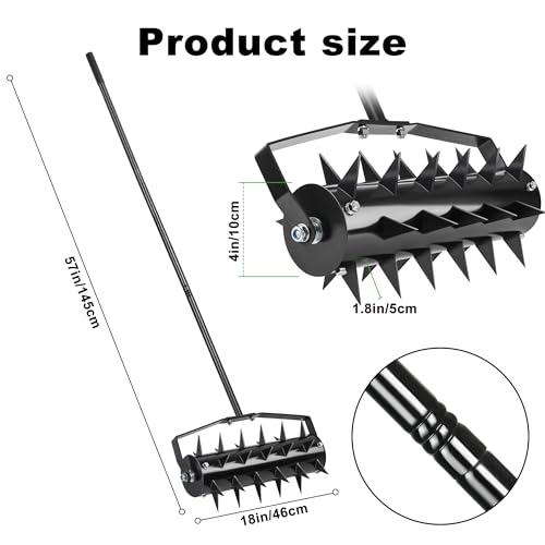 Effortless Lawn Care: Choose our The 57-inch hand rolling lawn aerator for a comfortable and ergonomic experience. making aeration easy and enjoyable.