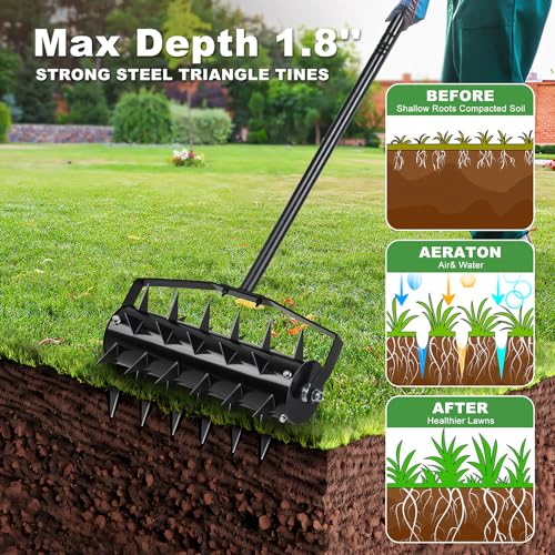 Tips:Address compacted soil issues with our hand aerator lawn tool .If your soil is hard and dry, please pre-soak your lawn so that the yard aerator tool can work best.