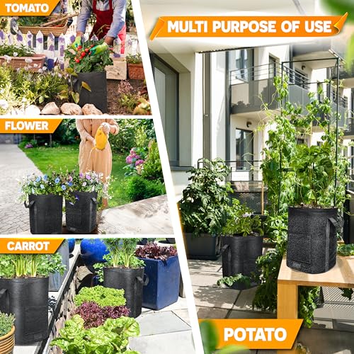 [Durable & Reusable Material] These garden grow bags are made of strong and ventilated Polypropylene nonwoven fabric material, which is eco-friendly, allowing your roots to breathe for healthier, more vigorous growth. After harvesting, this garden container can be folded, washed, and used to store dirty clothes, pack tools, etc. You can reuse these garden bags many times.