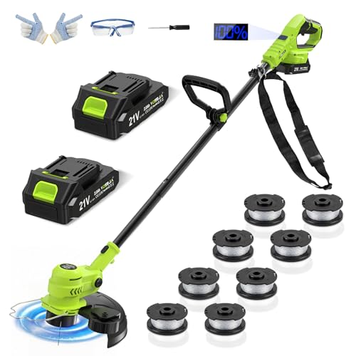 AUTO LINE FEED (NO BUMPING) & 8 REPLACEMENT SPOOLS: This cordless string trimmer features an intelligent auto line feed system that automatically advances the line upon restart—eliminating the frustration of manual bumping. (How it works: Simply release the trigger to stop the motor, then press again to feed the line). The kit includes 8 pre-wound spools for this electric weed eater, ensuring you’re fully stocked for multiple seasons of continuous, hassle-free lawn care.