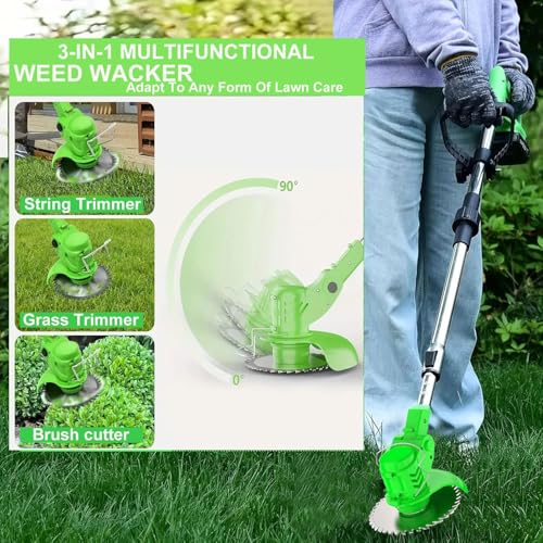 Durable Construction for Long-Term ReliabilityBuilt to withstand the rigors of regular yard maintenance, this cordless weed wacker/grass trimmer battery powered/lawn edger,features a rugged ABS plastic housing and , scratches, and wear from outdoor use. The blades are made from high-carbon steel , ensuring sharpness and durability even after repeated use on tough brush and rocky terrain.So you can use the trimmer in damp conditions without fear of damage.