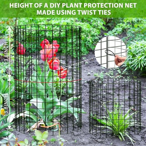 Package Contents - our plant protector includes 30 metal plant cages, 30 ground stakes, 100 black tie bands and 40 plant label; Combine to protect plants from animals; cages stand approx 13.7 inches tall; Connect 3 or more for larger plants