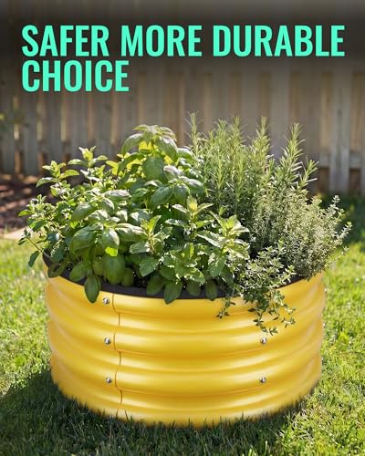 ZXZYHFTY Round Galvanized Raised Garden Bed kit,Yellow Outdoor Garden Raised Planter Box, Round Large Metal Raised Garden Beds for Vegetable 2 * 2 * 1ft 2 Pcs